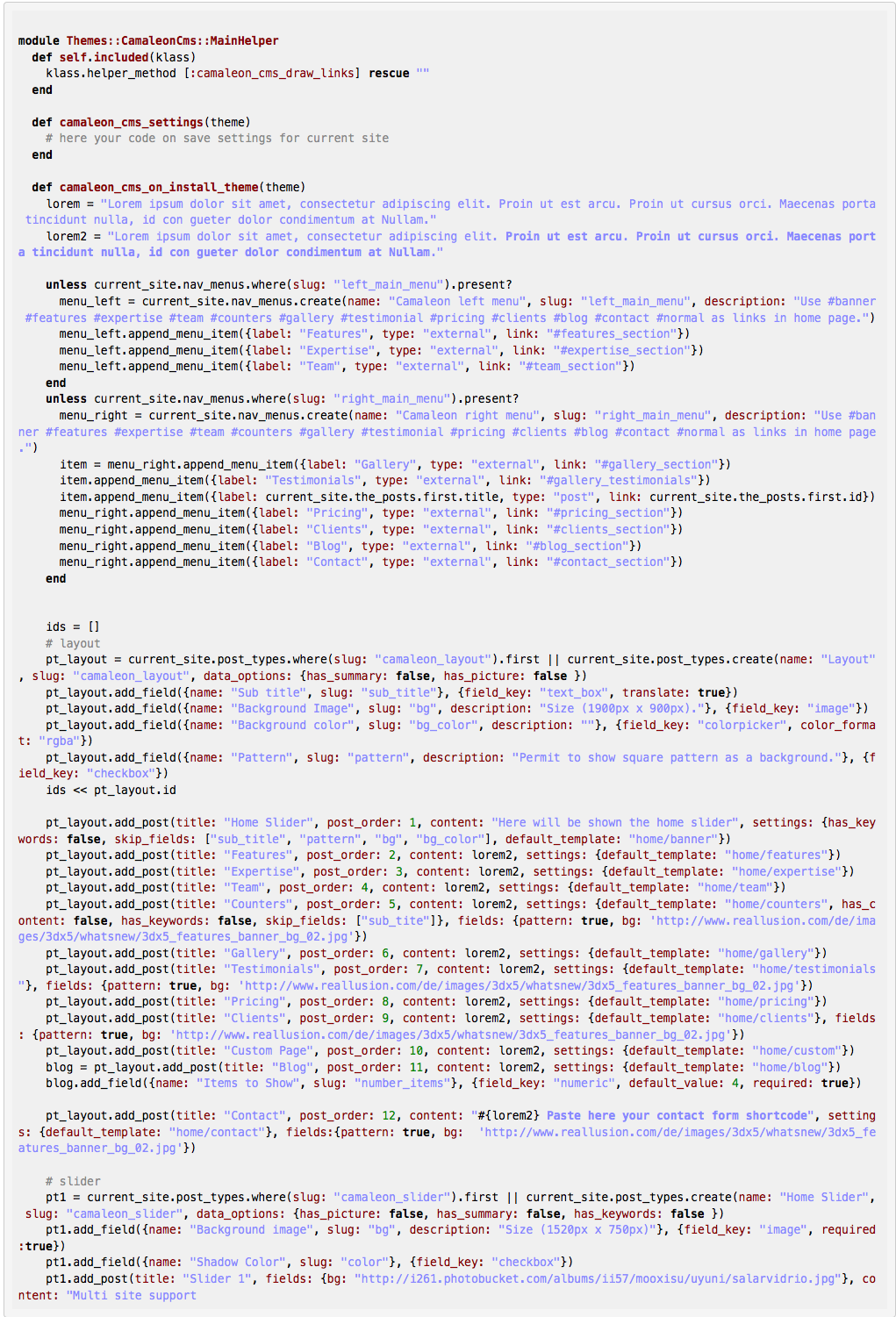 Camaleon CMS is an advanced and dynamic Content Management System Based on Ruby on Rails which is an alternative to Wordpress in Ruby on Rails. This CMS can be adapted to any kind of project without programming and giving to users more time for the content instead of programing. Read more.