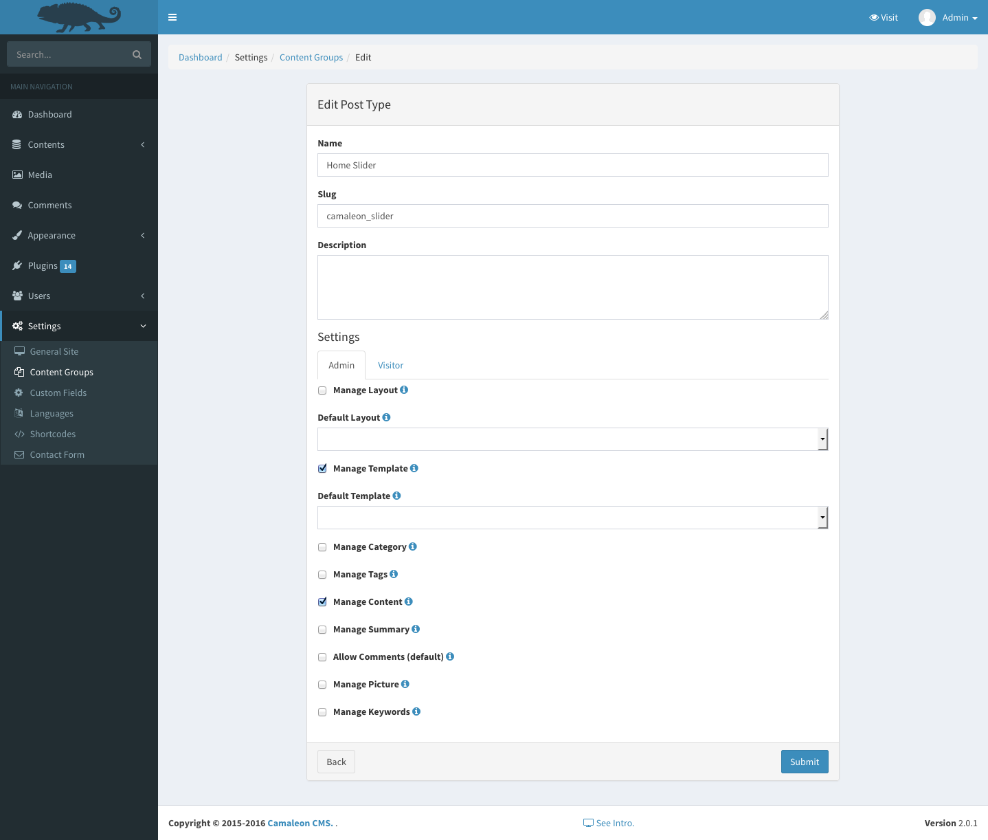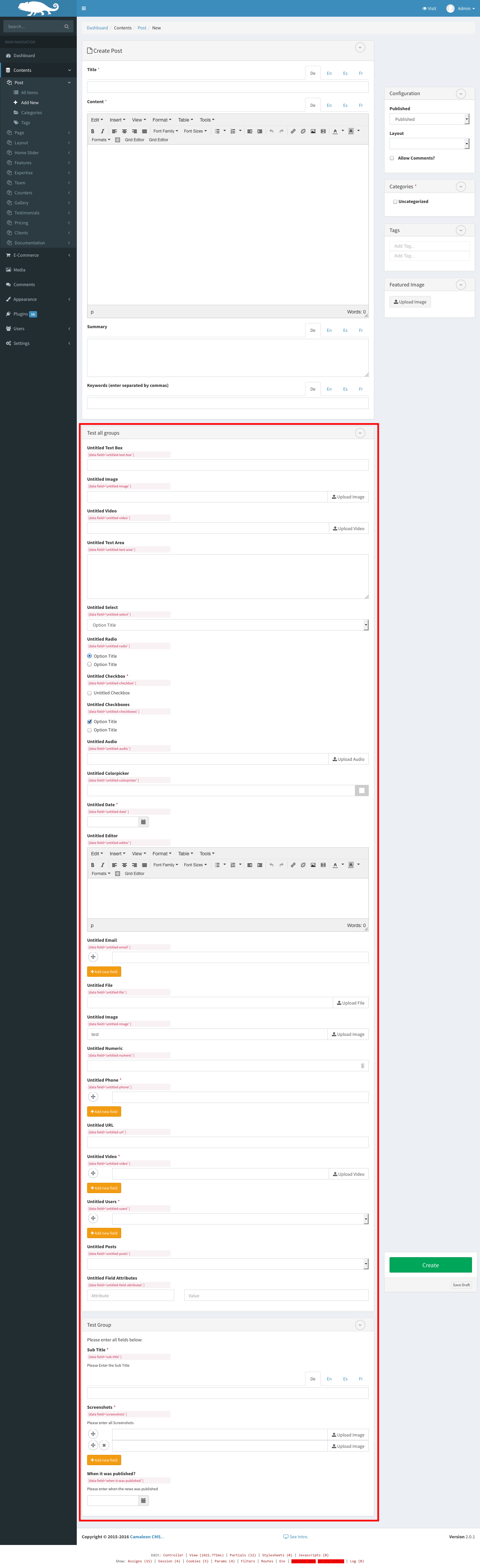 Create all your content groups by a simple form which permit you to manage custom many different contents structure without programming.